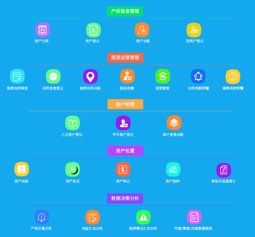 華天動(dòng)力通過(guò)多年對(duì)國(guó)有投融資平臺(tái)資產(chǎn)經(jīng)營(yíng)管理業(yè)務(wù)的研究及信息化服務(wù)實(shí)踐,基于自有強(qiáng)大的自定義開(kāi)發(fā)建模及數(shù)據(jù)報(bào)表引擎,支持為不同類(lèi)型的國(guó)有投資企業(yè)客戶(hù)化構(gòu)建符合自身管理制度及需求應(yīng)用的“資產(chǎn)運(yùn)營(yíng)管理平臺(tái)”,實(shí)現(xiàn)對(duì)經(jīng)營(yíng)性資產(chǎn)(如:土地、廠房、房屋住宅、寫(xiě)字樓、商鋪、廣告位等)從取得登記、使用、經(jīng)營(yíng)、處置等全生命周期的管理。